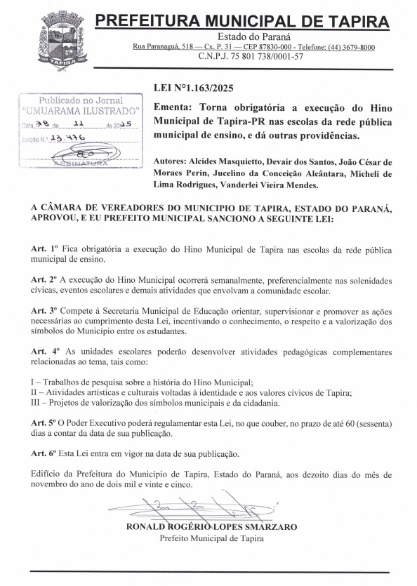 Ver todasATO DE NOMEAÇÃO Nº 001/2025 O Presidente da Câmara Municipal de Tapira, no uso de…